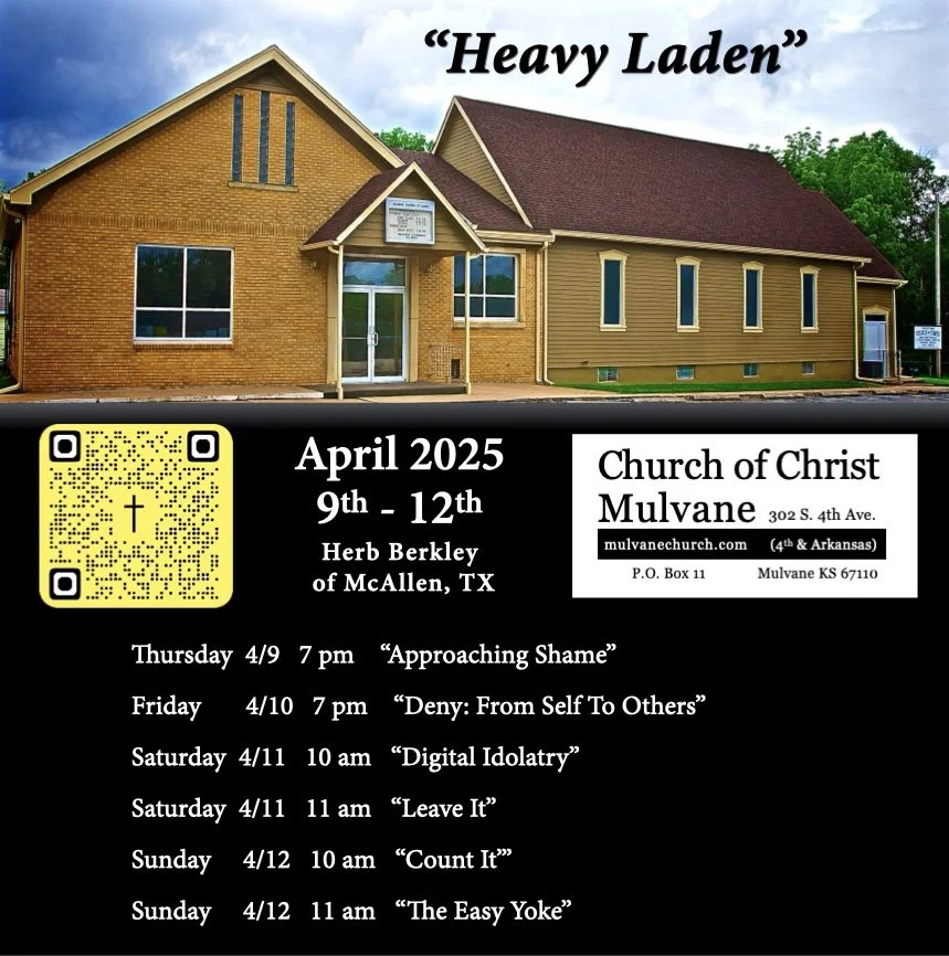 The Mulvane congregation has a Gospel Meeting every spring, normally in April. In 2022, we will also have one in the fall.